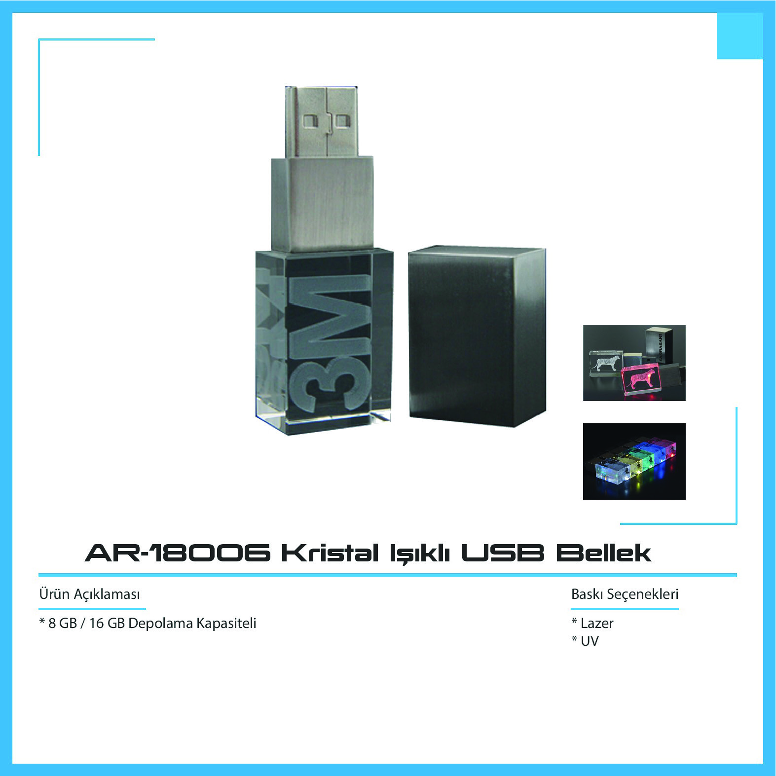 AR-18006 Kristal Işıklı USB Bellek